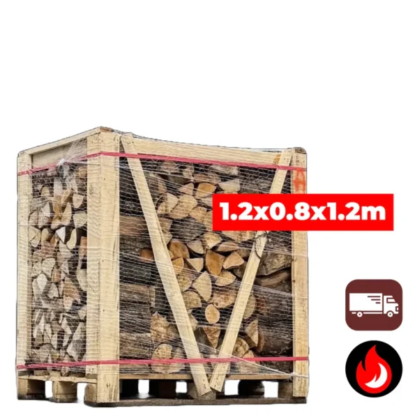 Beuken brandhout, oven gedroogd voor een lange en gelijkmatige verbranding. Kleine pallet 450 kg.