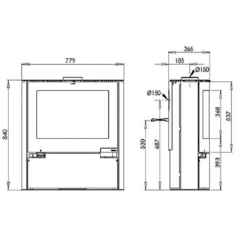 Houtkachel JAcobus 12 Doorkijk met zicht op de vlammen aan beide zijden, instelbaar vermogen en hoog rendement voor ruimtes tot 150 m³.