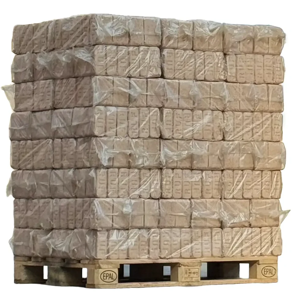 Hoogwaardige eiken briketten, oven gedroogd, lange verbranding en hoog rendement. Pallet 480 kg.